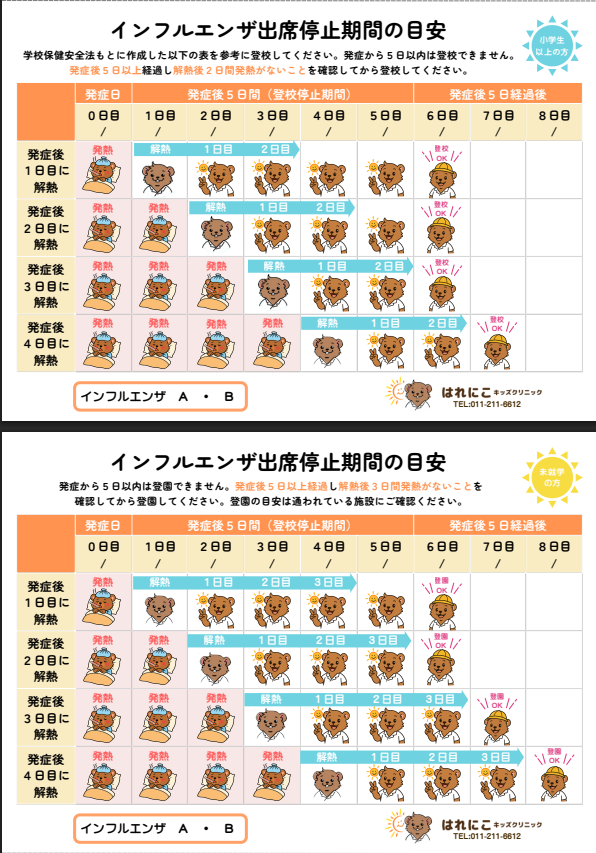 - インフルエンザ出席停止期間の目安|はれにこキッズクリニック